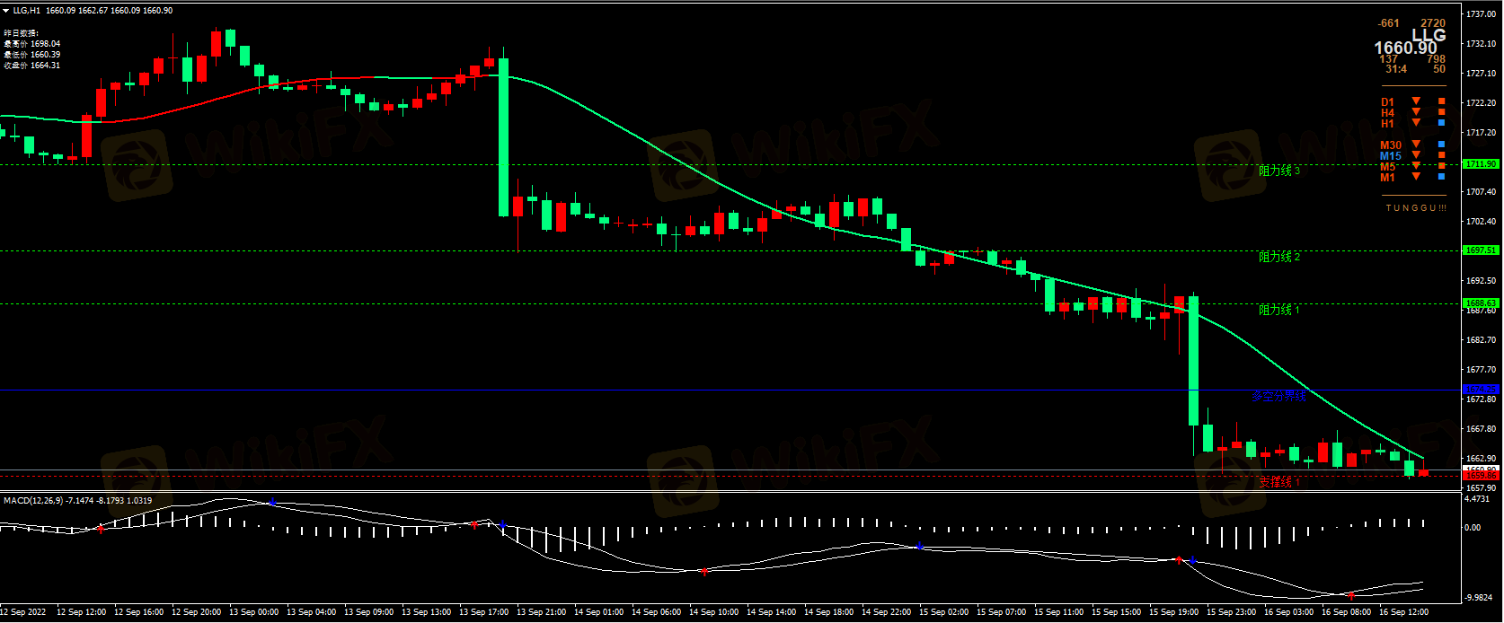 週五(9月16日)亞歐時段,現貨黃金窄幅震盪,現時交投於1665.23附近,略高於隔夜創下的逾兩年新低。 週四資料顯示,美國8月零售銷售意外反彈,美國上周初請失業金人數下降,進一步給美聯儲大幅加息提供數據支撐,對美聯儲9月之後繼續激進加息的預期也有所升溫,美國兩年期國債收益率創十五年新高,美元也守在略低於逾20年高點的高位,對金價打壓明顯。 金價跌破1680關鍵强支撐後,技術面短、中、長線看空訊號均顯著增加,預計金價短線仍有進一步下跌風險。