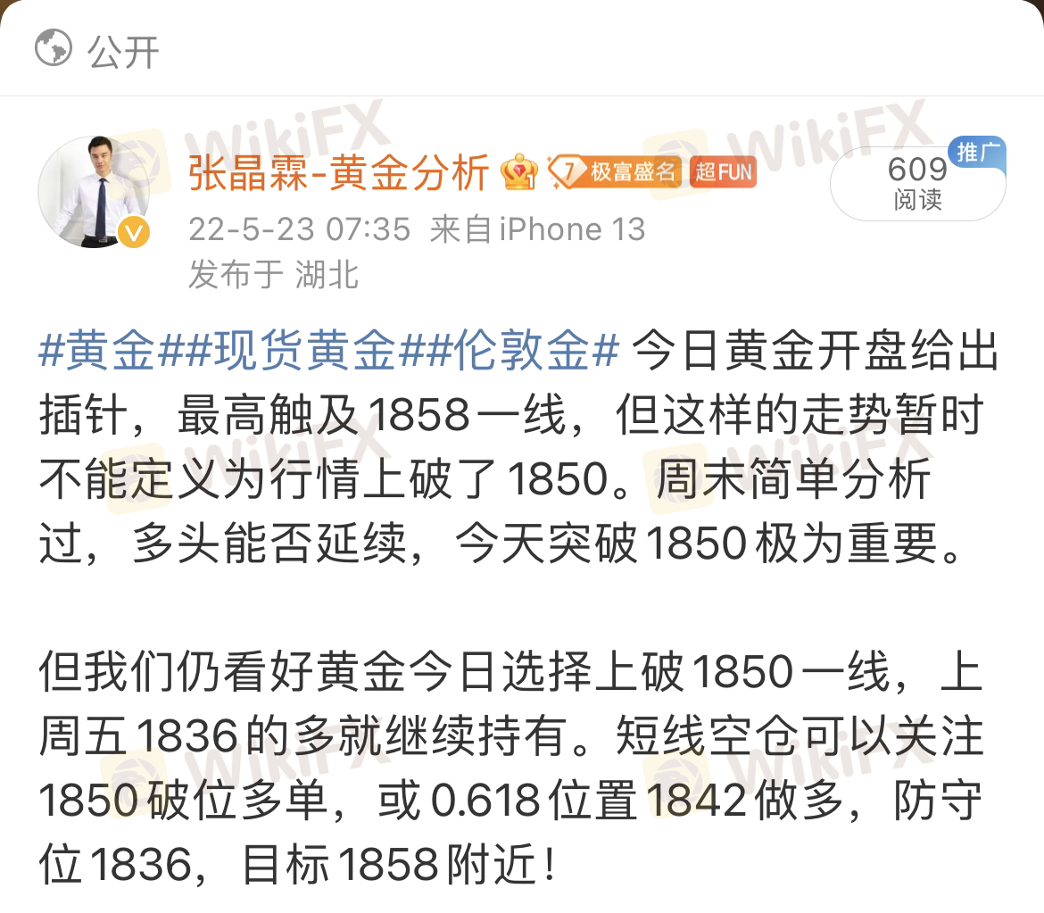 行情分析张晶霖:5.24欧盘黄金操作建议及行情分析!